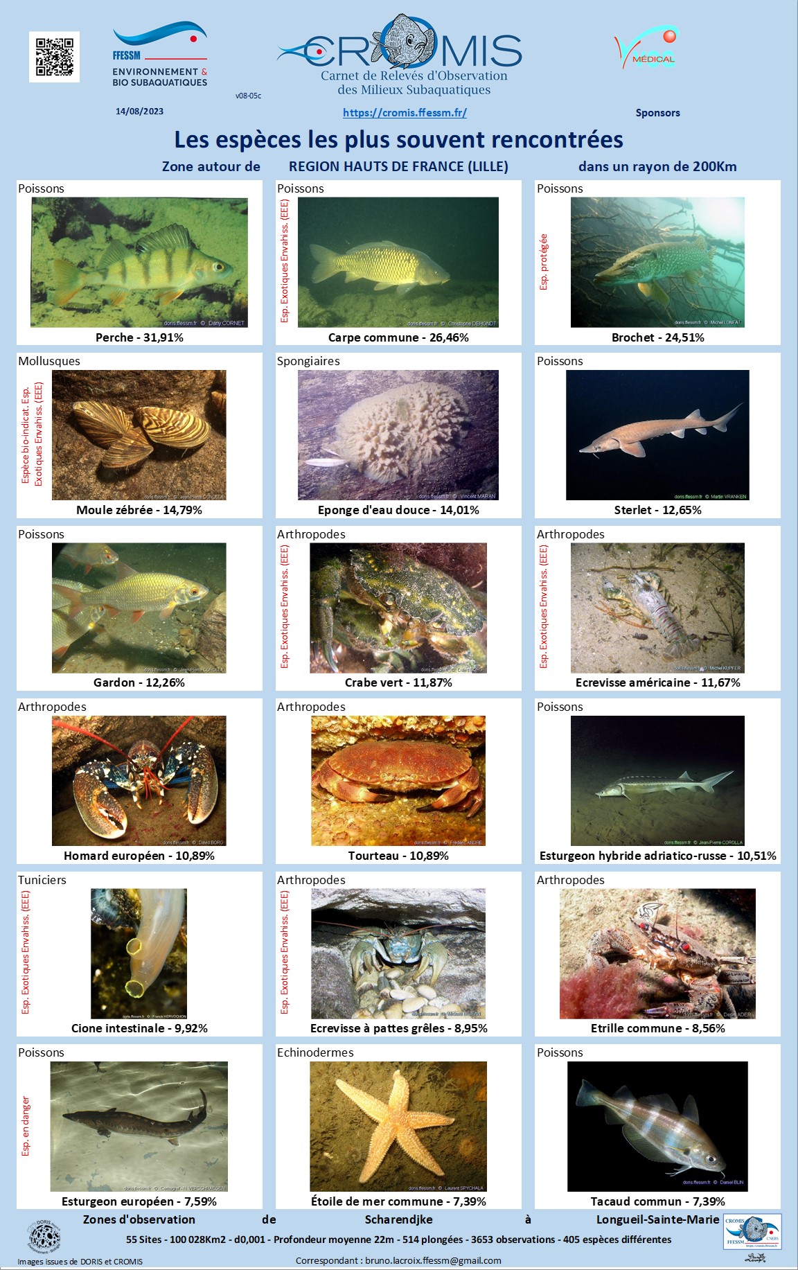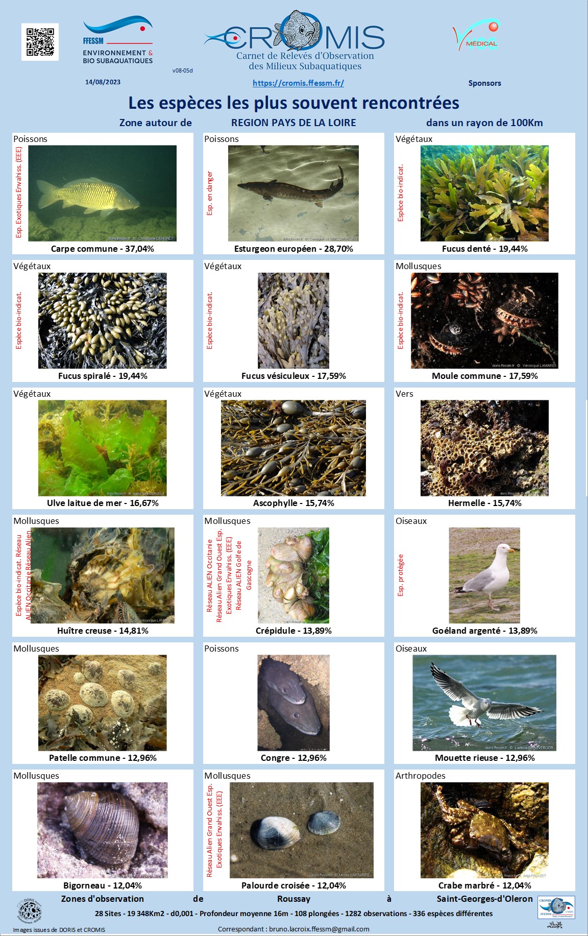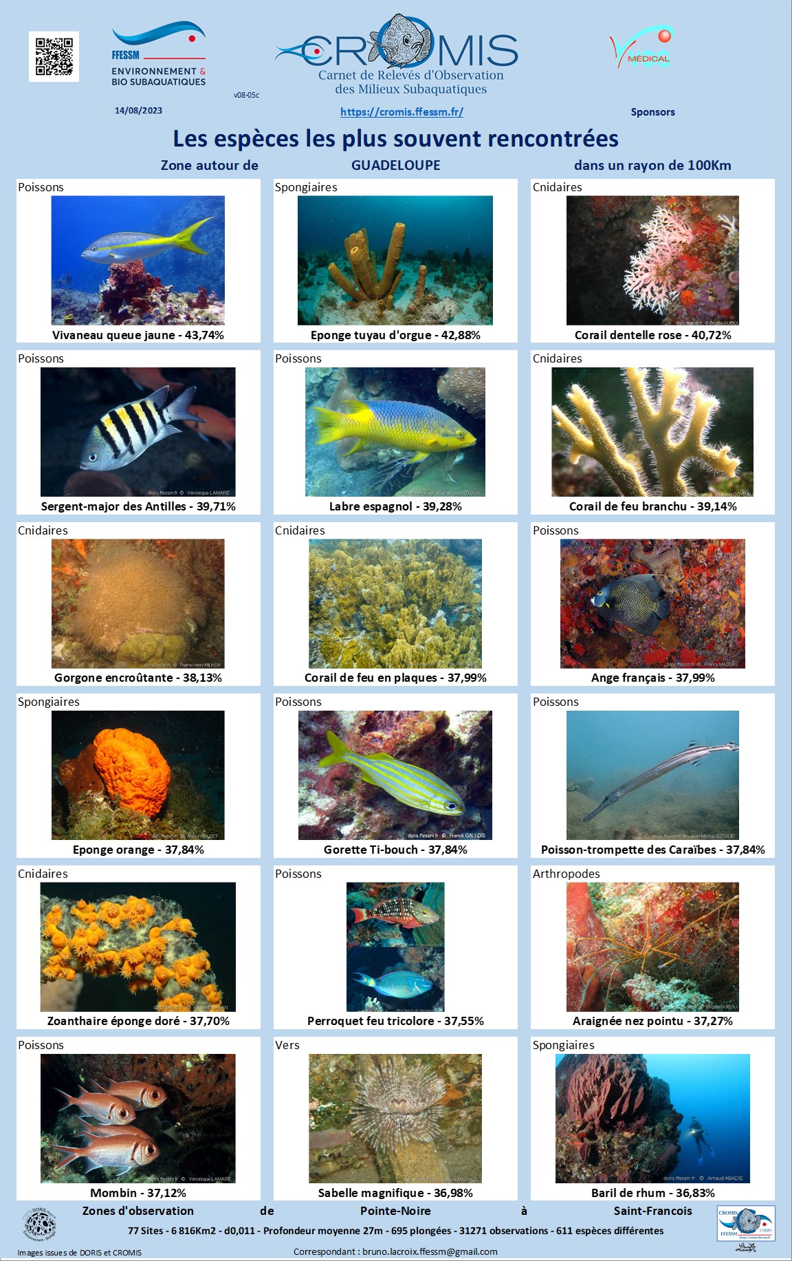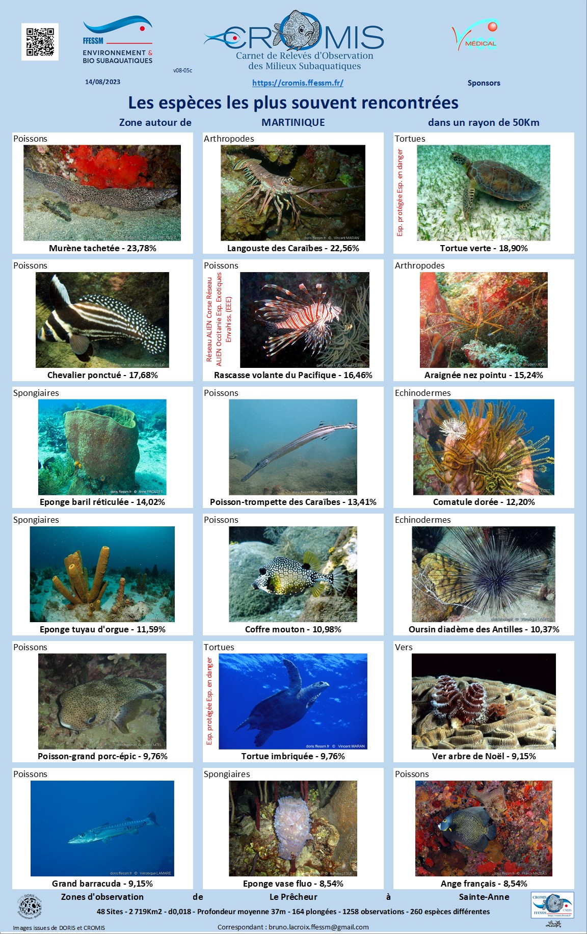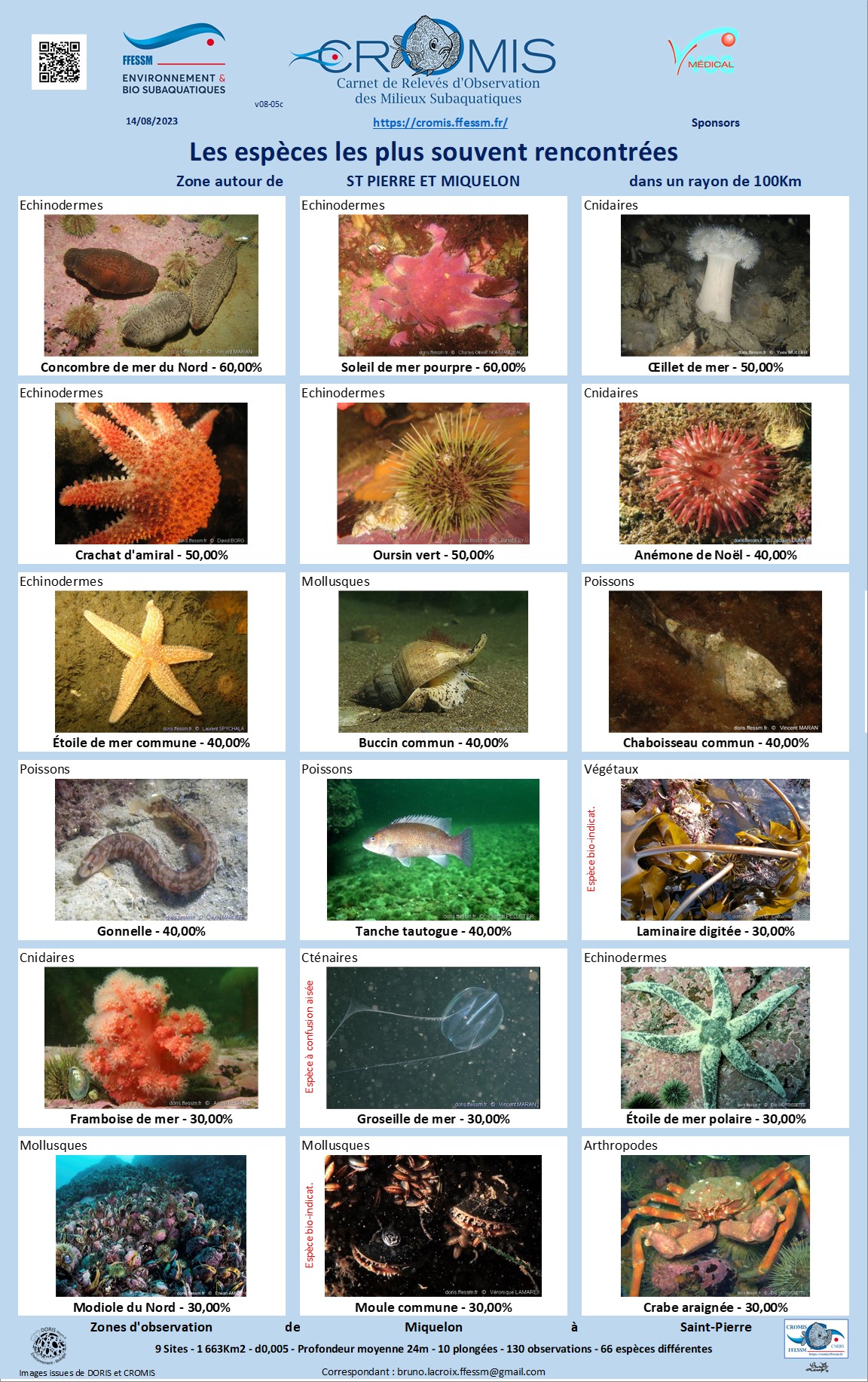Le correspondant CROMIS de la région SUD, Bruno LACROIX, a composé, à partir des données renfermées dans la base de données de CROMIS, des fiches et des posters par région ou sous-région, montrant les espèces et les sites de plongée de chaque zone.