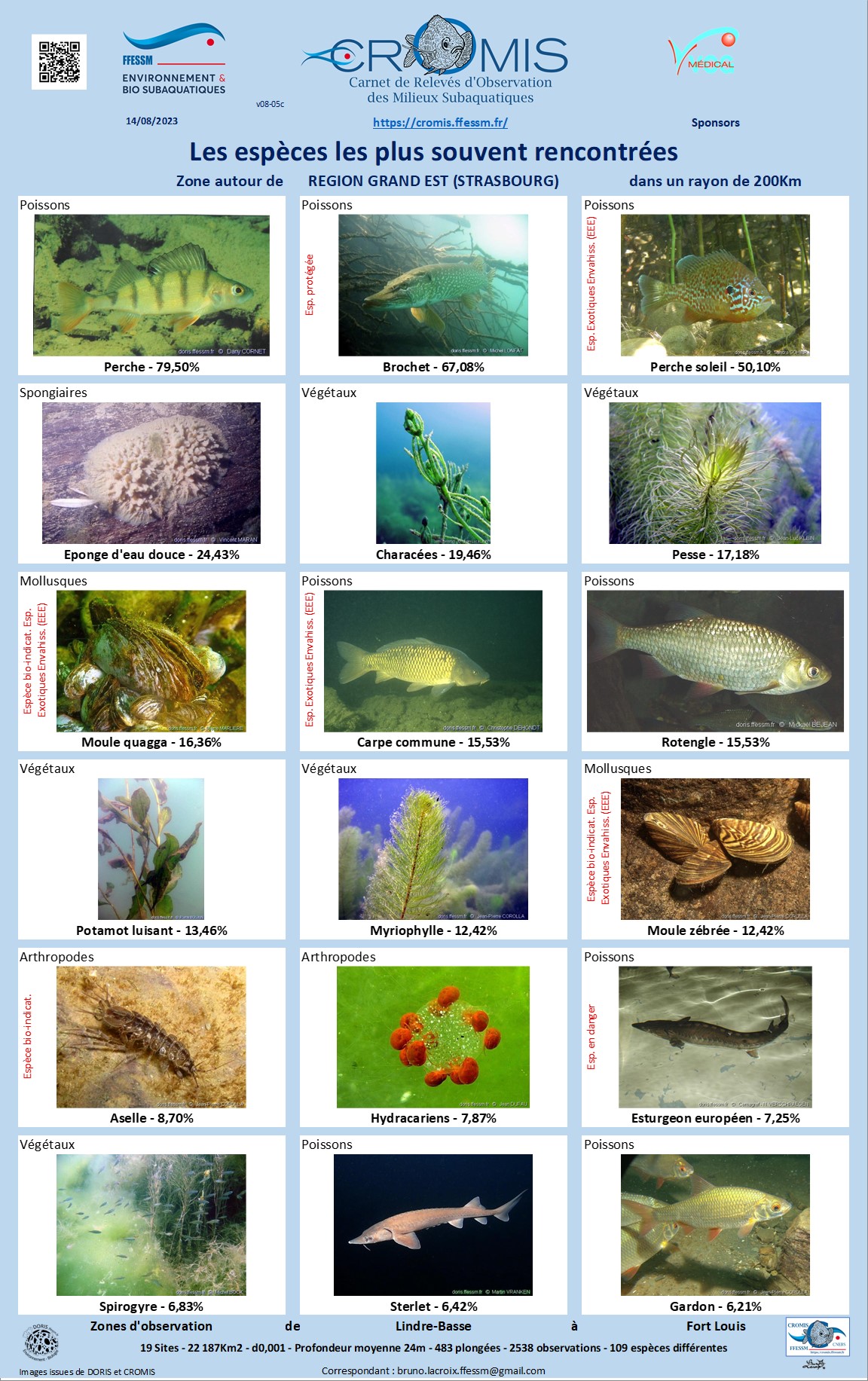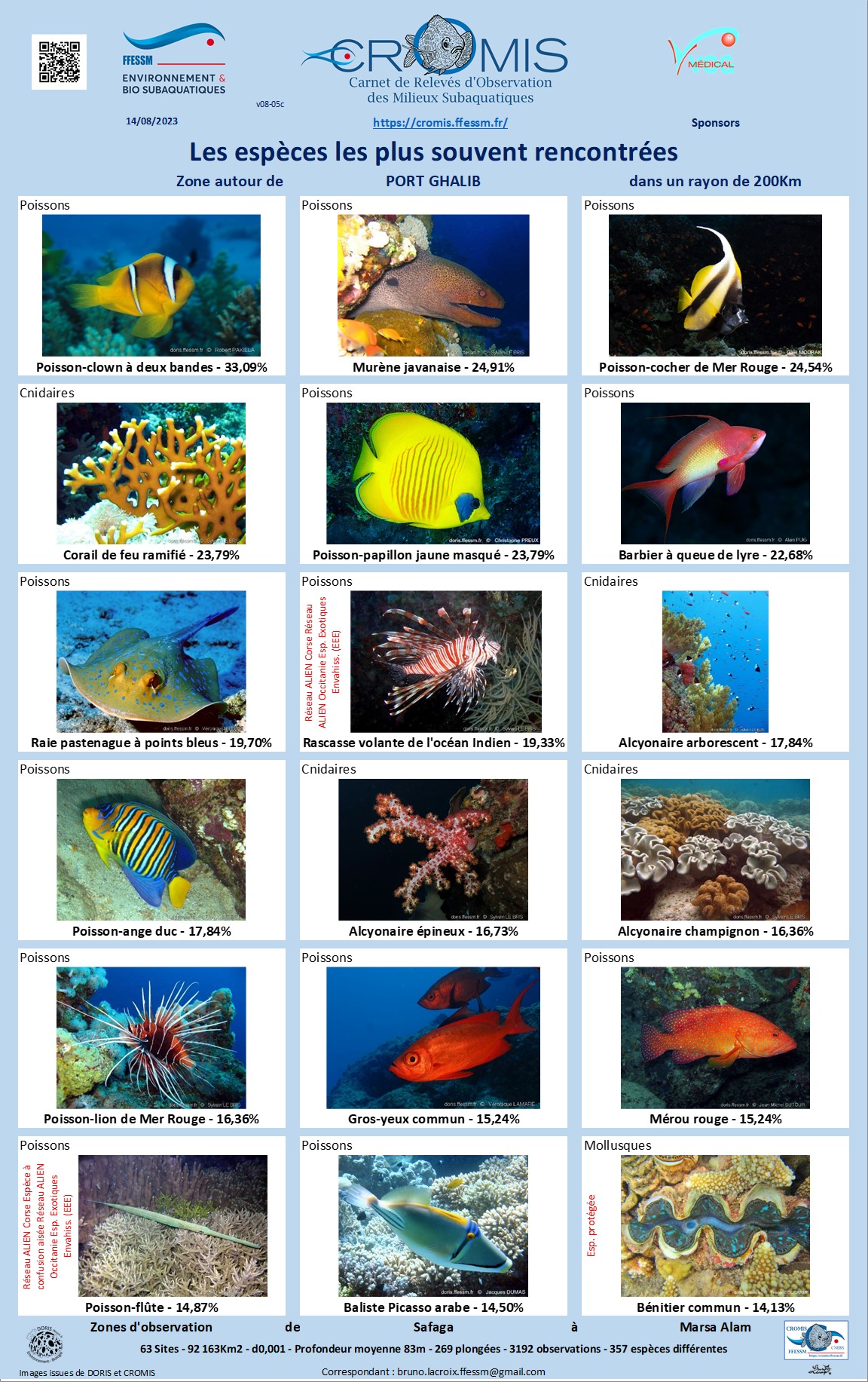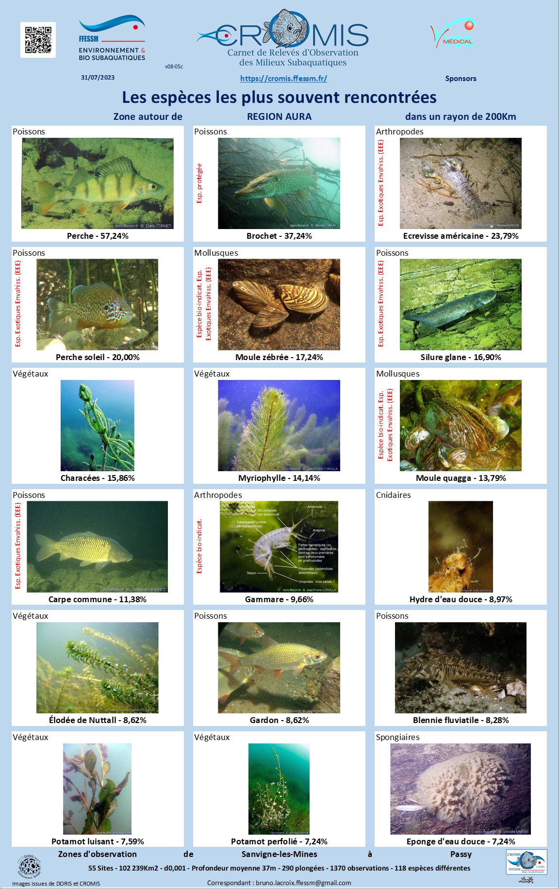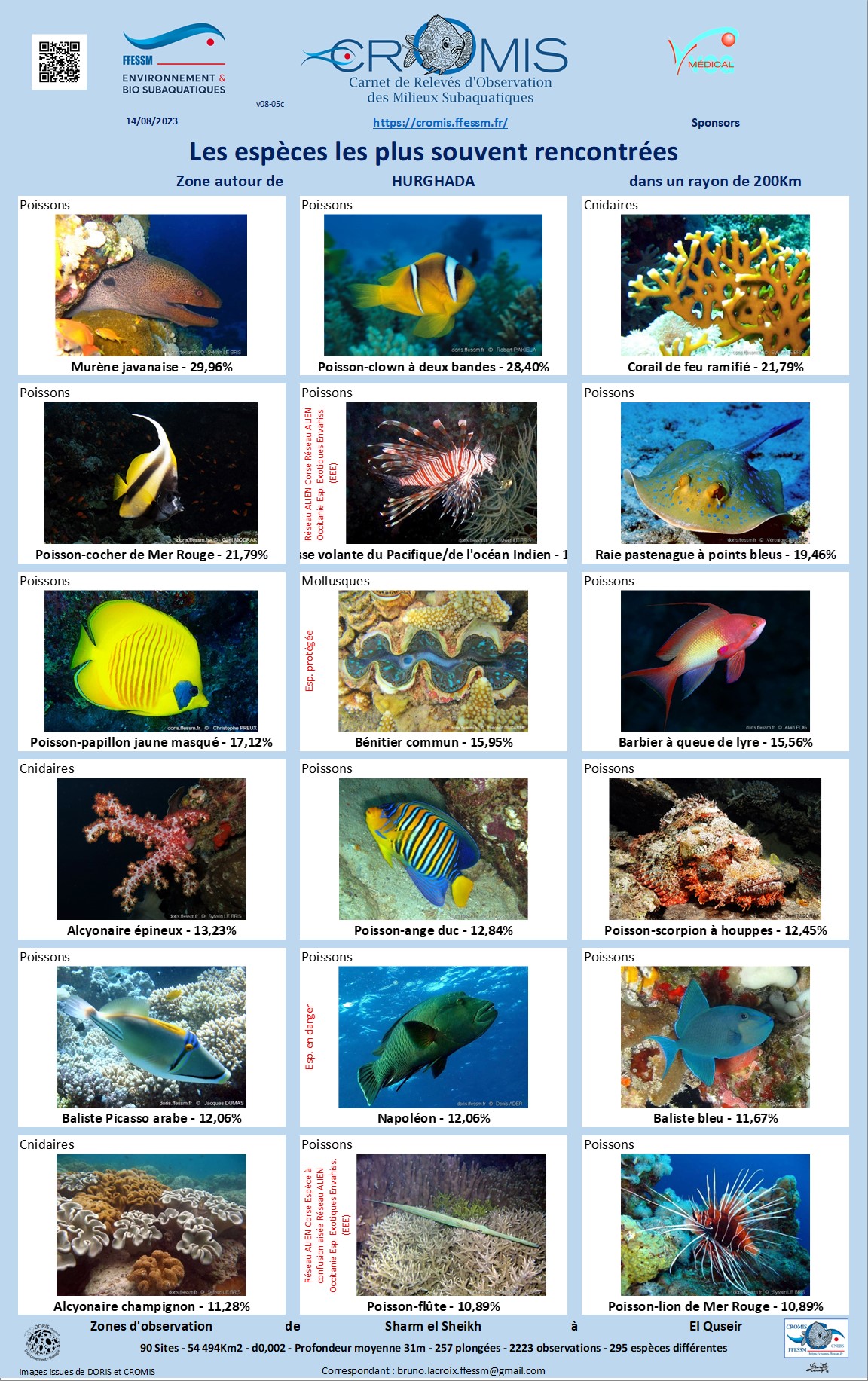 Le correspondant CROMIS de la région SUD, Bruno LACROIX, a composé, à partir des données renfermées dans la base de données de CROMIS, des fiches et des posters par région ou sous-région, montrant les espèces et les sites de plongée de chaque zone.